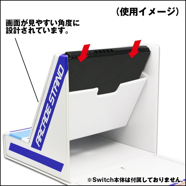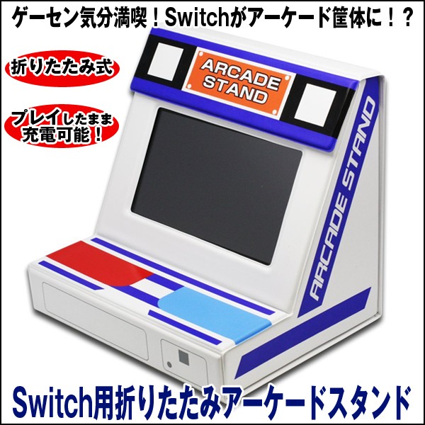 ゲーセン気分満喫!Switchがアーケード筐体に!?折りたたみ可能なSwitch用スタンド登場!アーケード風スタンドにSwitch本体を設置して、あの頃の懐かしいゲームを楽しもう!Switch本体を設置することによって、アーケード筐体のような見た目にできるゲームスタンドです。もちろん、見た目だけでなく、画面が見やすい角度になるよう設計されておりますので、ゲームプレイや動画の視聴も快適になります。スタンドの素材は軽量なPVC素材で、折りたたみが可能な仕様となりますので保管の際に場所を取りません。また、背面には充電ケーブル差込口が開いていますのでゲームプレイや動画視聴したまま充電することが出来ます。また、背面には空気穴が開いており、Switch本体の熱がこもらないように配慮しています。■JAN:4582286321964