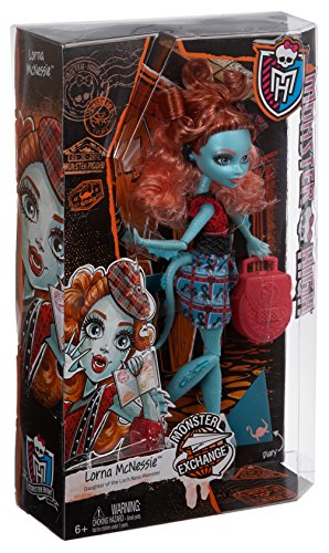 -. Binding : Toy -. Brand : Monster High -. EAN : 0885172321777 -. Feature : This Scare-Mester, the ghouls learn about new skull-tures through a Monster Exchange program that brings new students in and sends others abroad / Lorna McNessie is making a splash at Monster High with her Rotland upbringing / She wears a gore-geous outfit monster-mashing destination skelements with scaritage icons / To-die-for shoes, uhhhmazing accessories and a freaky fabulous travel bag complete the killer look / Doll also come with a Skullette-shaped hairbrush, doll stand and travel diary with all the gory details! -. IsAdultProduct : 0 -. ItemPartNumber : CDC36 -. Label : Monster High -. LegalDisclaimer : small parts choking hazard -. Manufacturer : Monster High -. Model : CDC36 -. MPN : CDC36 -. NumberOfItems : 1 -. PackageQuantity : 1 -. PartNumber : CDC36 -. ProductGroup : Toy -. ProductTypeName : TOYS_AND_GAMES -. Publisher : Monster High -. Studio : Monster High -. Title : Monster High Monster Exchange Program Lorna McNessie Doll -. UPC : 885458170655 -. Warranty : 1 year warranty against manufacturer defects