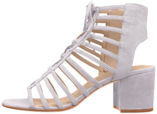 Product DescriptionCaged kid suede sandal with wrapped block heel.0