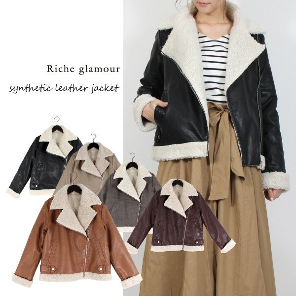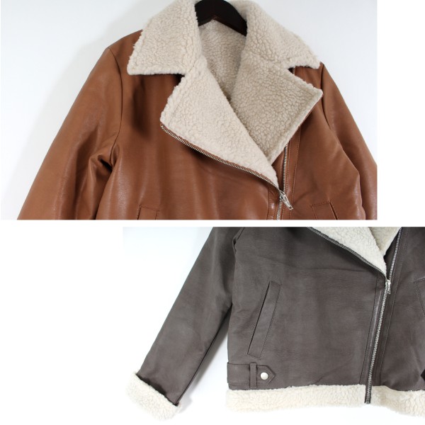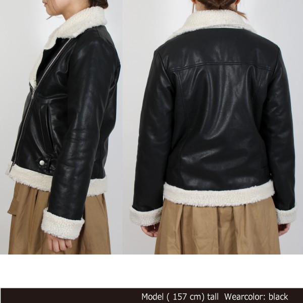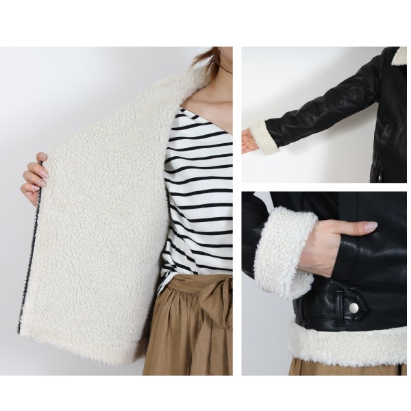 合成皮革の裏ボア ダブルライダースジャケット☆