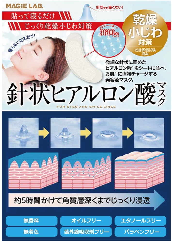 貼って寝るだけ、ヒアルロン酸でじっくり乾燥小じわ対策シート マジラボ HAマイクロマスク 2枚入 マイクロニードル ヒアルロン酸 フェイスパック マスク 潤い 下まぶた 目尻 シワ 乾燥 対策 MG22153 MAGiE LAB.
