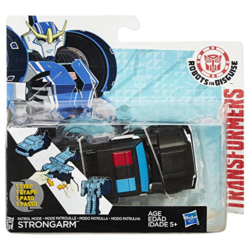-. Feature : 1-Step Changers Strongarm figure / Figure converts from robot mode to police car mode and back / Converts in 1 step / Scan the figure's badge to unlock the character in the Transformers Robots in Disguise app (device not included) / Includes figure.