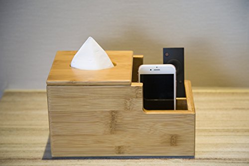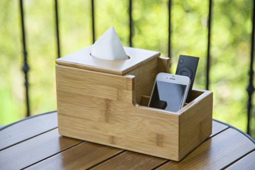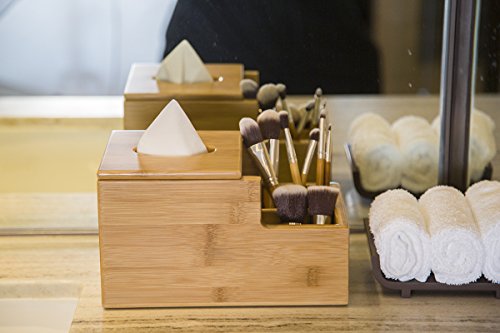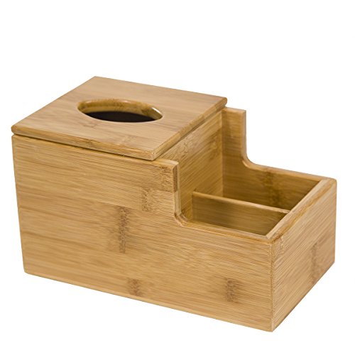 GoBam Bamboo Tissue Box Cover Desk Organizer Wood Tissue Paper Holder(9.65 x 5.51 x 5.51Inch)