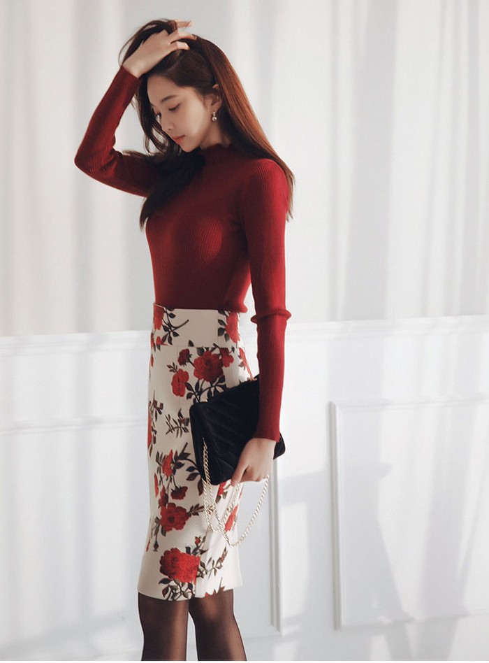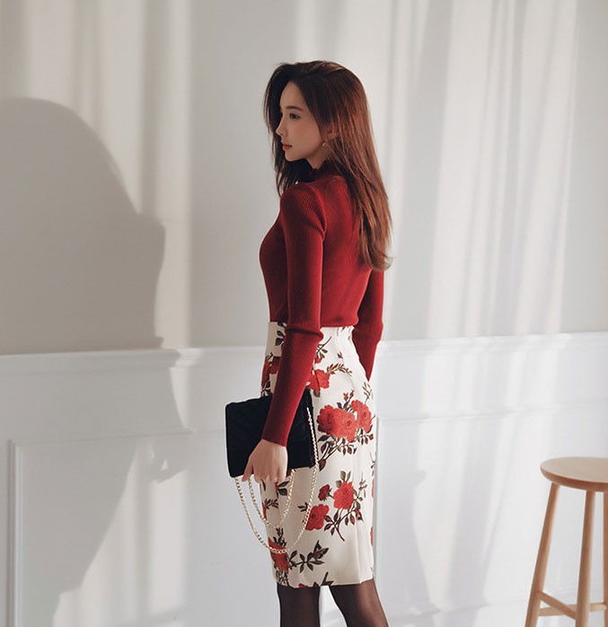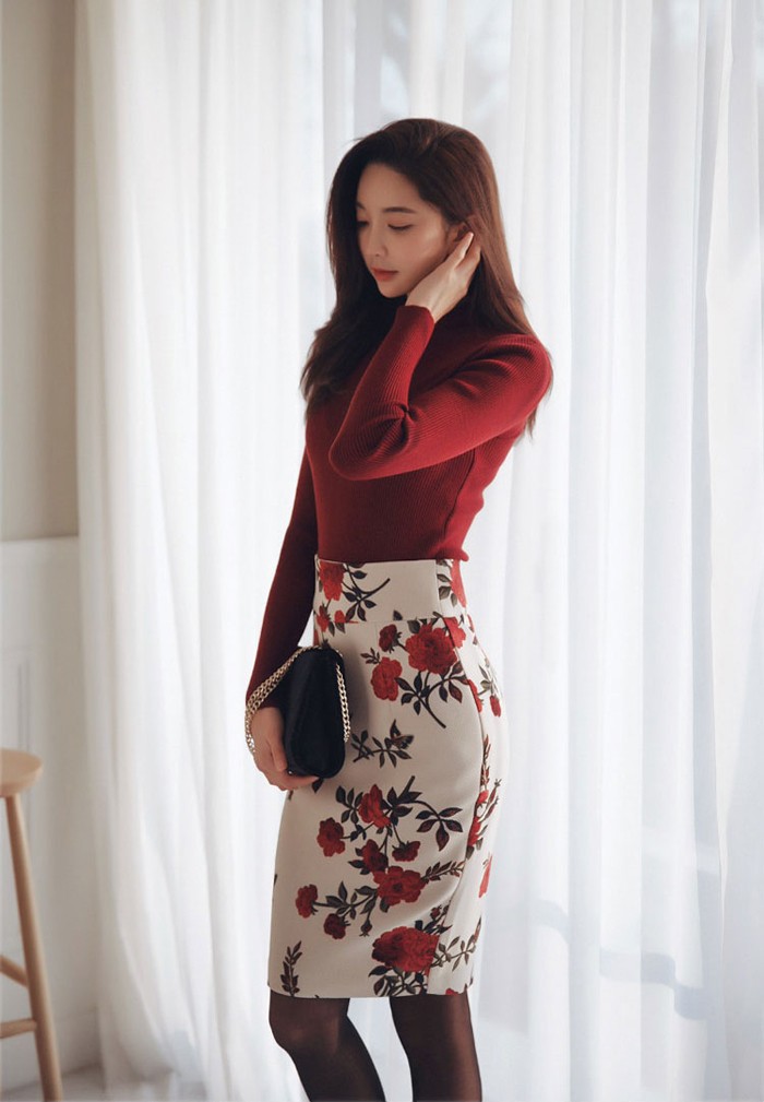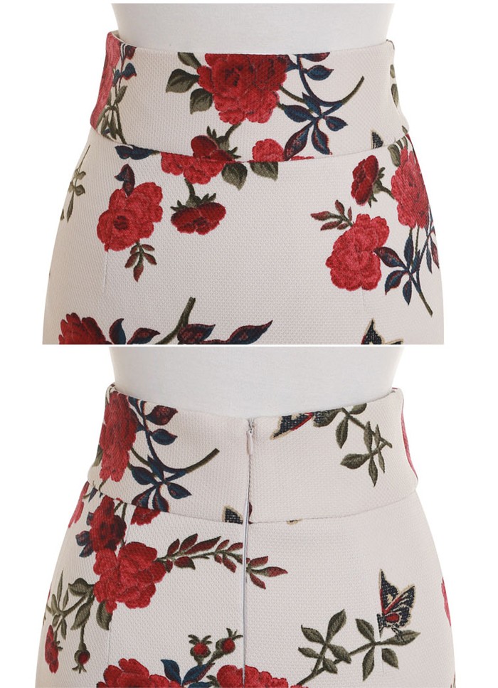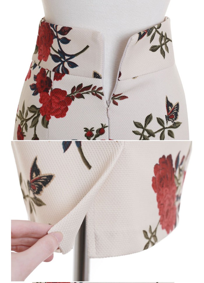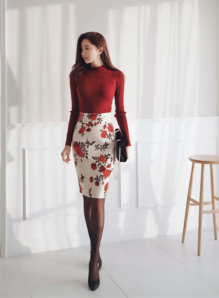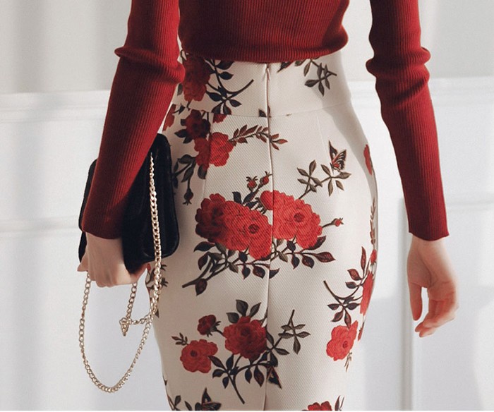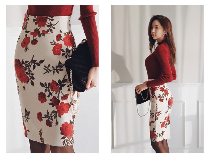 商品名:ペンシルスカート 花柄 タイト フラワー 膝丈 きれいめ