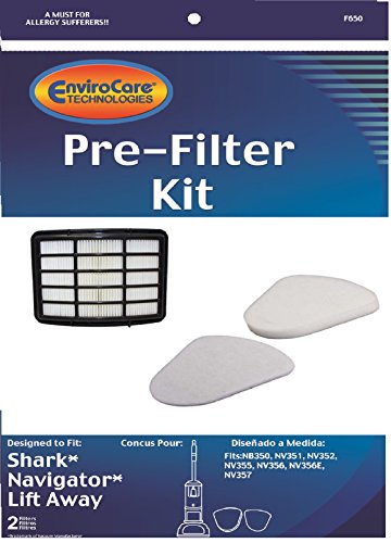 -. Feature : 1 Washable Foam and Felt Pre-Filter Replacement Kit & 1 Hepa Filter / Fits the following Shark Navigator Lift-Away Models: NV350, NV351, NV352, NV355, NV356, NV356E, NV357 / Designed & Engineered By Envirocare Technologies #F650 & #F651 / Absolutely Essential for Allergy Sufferers! Traps 99.97 of airborne particles / Replaces: Shark Euro-Pro Part Number XFF350 & XHF350