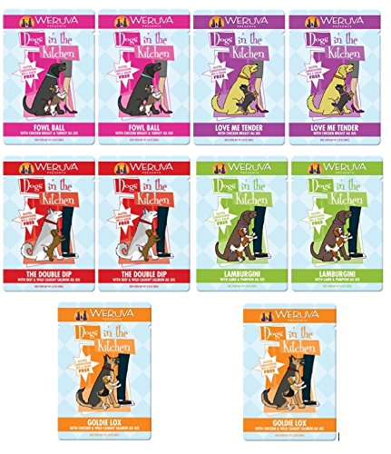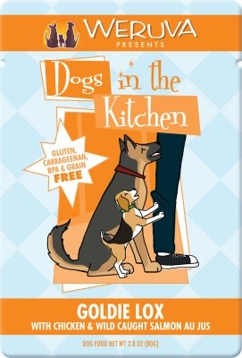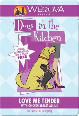 Dogs in the Kitchen comes in both cans and pouches for your convenience. DITK uses boneless, skinless chicken breast meat, boneless, skinless lamb and fish. All are protein focused and low in fat. Weruva's NEW Dogs in the Kitchen dog food will make each meal your pup's favorite part of the day!Feature