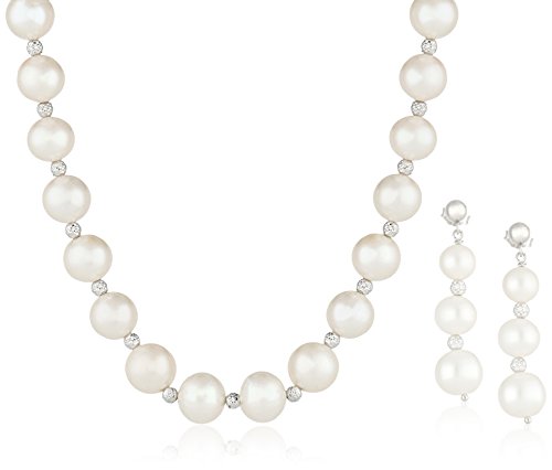 -. Title : Sterling Silver Cultured Freshwater Pearl Necklace and Drop Earrings Jewelry Set