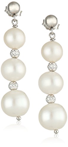 -. Feature : Elegant jewelry set featuring necklace and drop earrings crafted from smooth cultured pearls interspersed with textured sterling silver beads / Necklace: Lobster-claw clasp / Earrings: Friction-back posts / Imported