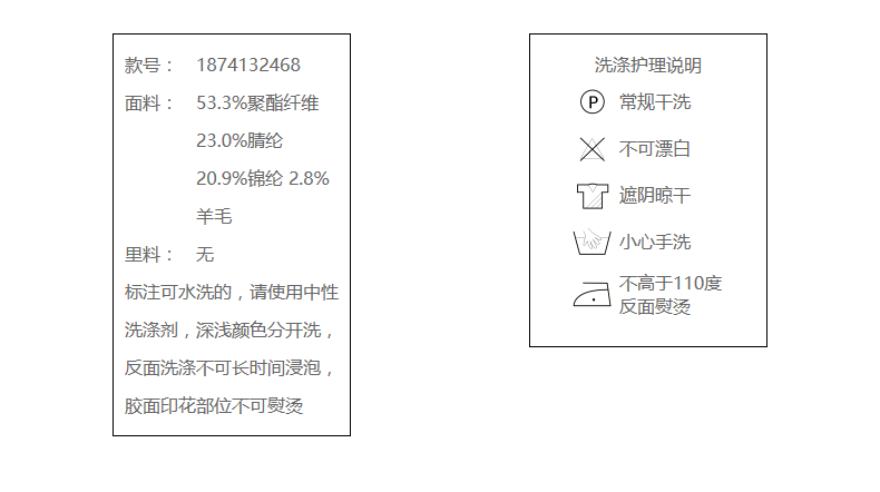 53.3%聚酯纤维 23.0%腈纶 20.9%锦纶 2.8%羊毛