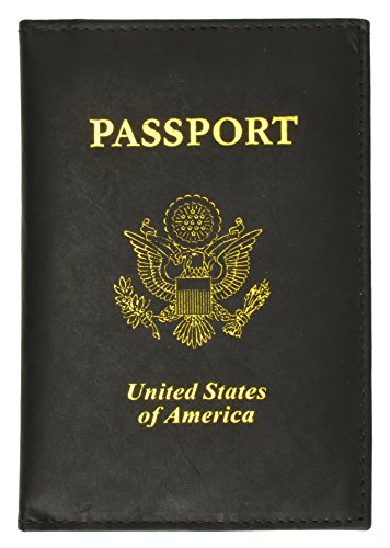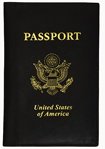 RFID Blocking USA Gold Logo Leather Passport Cover Holder
