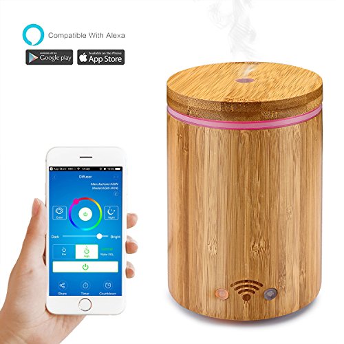 Konesky Smart Essential Oil Diffuser, Wi-Fi Aromatherapy Diffuser Mist Humidifier Work with APP Remote/ Voice Control, Color LED Lights Changing, Dual Mode Mist and Waterless Auto Shut-off (160ml)