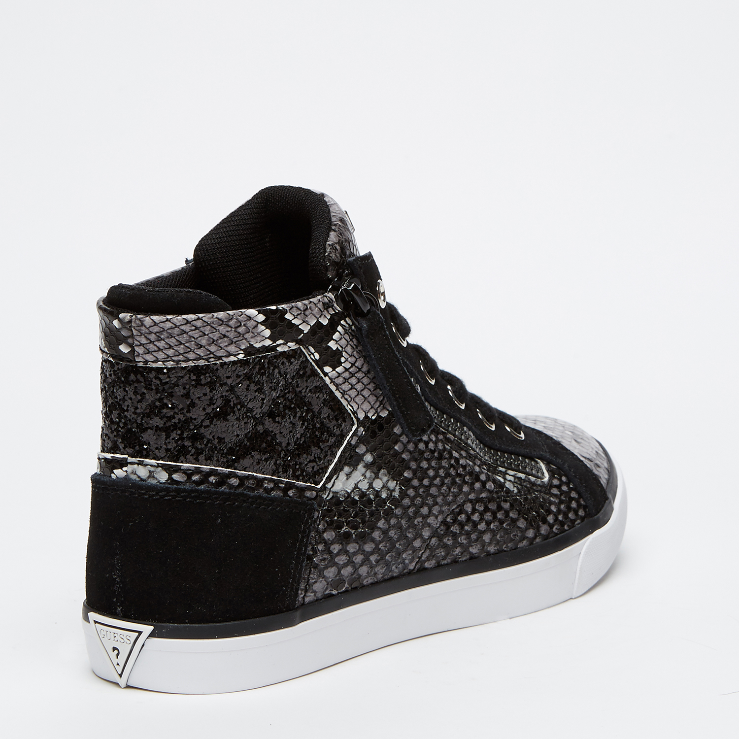 * 뱀피 프린트 PU &; 글리터 소재 콤비