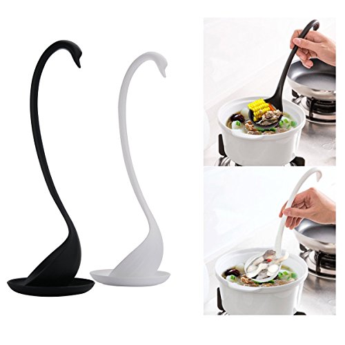 Codream® Best Value Pack of 2 - Elegant Swan Creative Kitchen Soup Ladle Spoon (Black+White)