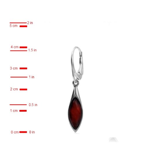 -. Title : Sterling Silver Red Dark Amber Set Marquise Drop Leverback Earrings Necklace 18 Inches