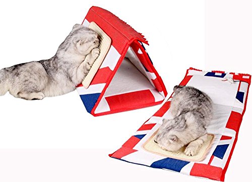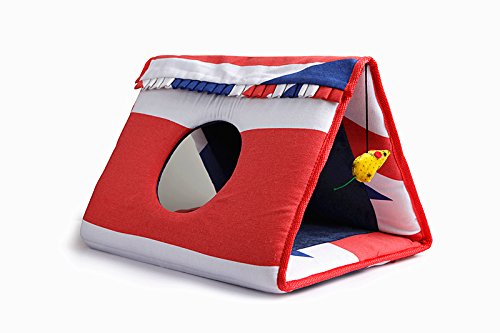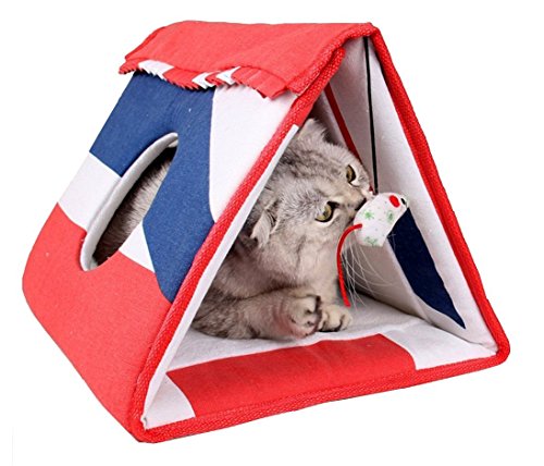 Enjoying Cat House Kitty Pyramid Cube Bed with Hanging Toy Mice and Scratcher Pad