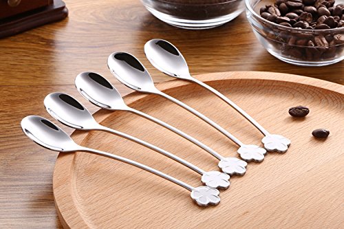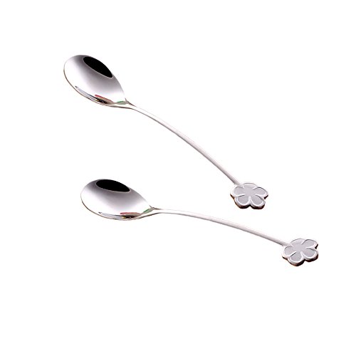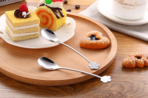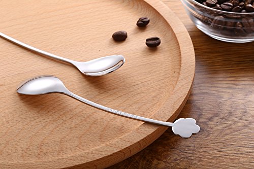 - 【FLOWER HANDLE DESIGN】 - Each spoon has different exquisite & graceful flower pattern .includes 2 beautiful coffee gift scoops. 2 set of silver five petals plum spoons, It brings your every drink feeling of funny and enjoy.