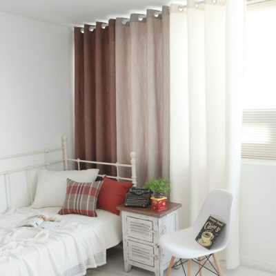 | [상품 정보] -사이즈 : 가로 135cm * 세로 230cm 내외 1장 -소 재 : 면폴리 100% -세탁법 : 단독 울코스세탁(울샴푸사용), 드라이크리닝 -표백제성분이 함유된 세제는 피해주세요.. 약간의 수축률은 있을 수 있습니다. *선택사항에서아일렛스타일을 선택하시면 아일렛 구멍에 커튼봉을 걸어 사용가능하며, 커튼핀스타일을 선택하시면 S자형 핀으로 커튼고리에 걸어 사용하실 수 있습니다. [ 디자인 코멘트 ] 퓨어 캐쥬얼 커튼세트를 소개해드립니다~! 부담없이 사용할 수 있는 컬러와 소재로 좀 더 깨끗하고 캐쥬얼함을 원하실때, 요녀석 퓨어 캐쥬얼 커튼을 선택해보세요~ 구김성이 별로 없는 폴리가 섞인 커튼으로 사계절 사용하시기 적절하시구요~ 햇빛이 50%정도 차단되어 은은하게 빛이 실내로 비쳐진답니다~ 브라운 그라데이션 컬러가 전달해주는 모던한 품격에 트윙클! 이미지상세컷을 자세히보시면 3컬러가 디피가 되어있죠~? 아이보리, 연브라운, 진브라운 두컬러의 실이 입체적으로 함께 직조가 되어있어, 좀더 고급스러움이 느껴져요^~^ 모던 하우스 커튼과 비교했을때 퓨어 캐쥬얼 커튼이 조금 더 톡톡한 느낌이랍니다^^ * 세탁법 꼭~ 유념해주세요.. * 주문후 원단 사입해서 제작되는 상품으로 교환 및 반품 안되세요.. 신중구매 부탁드릴께요.. ^^