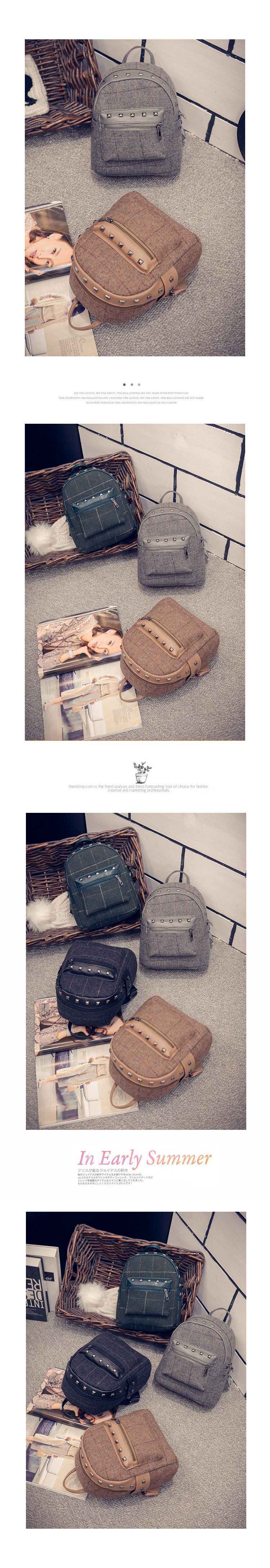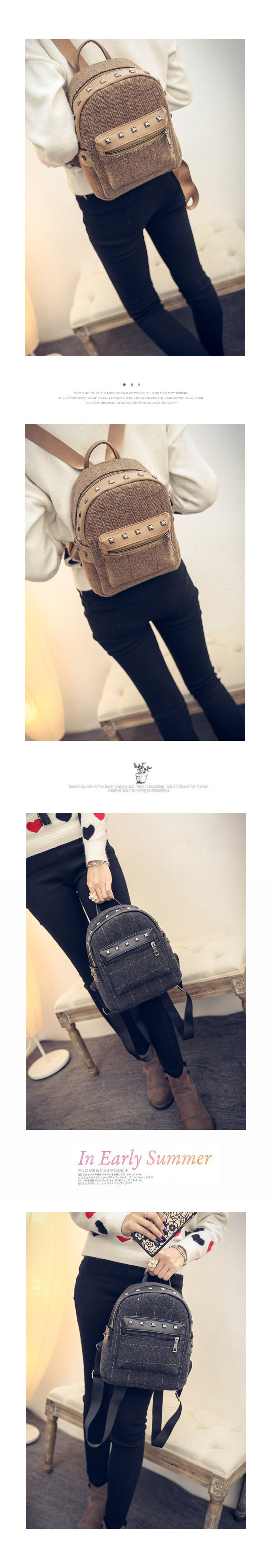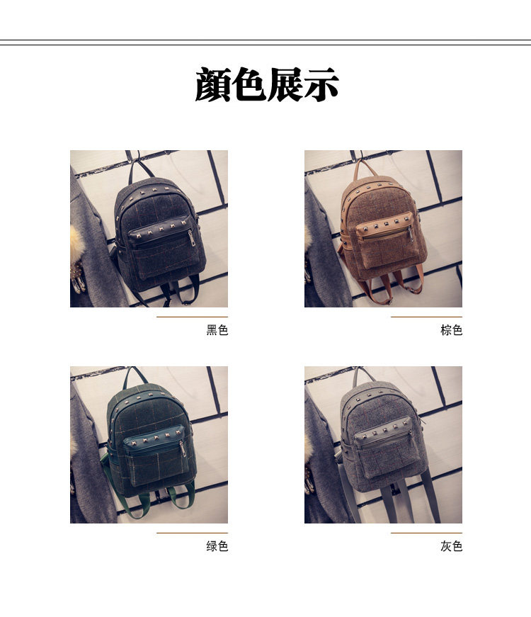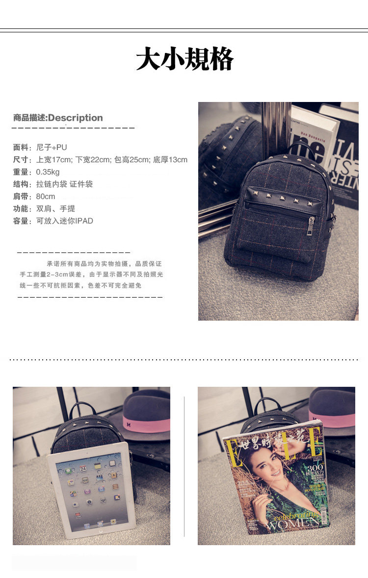 双肩包女士韩版文艺范小背包个性布艺学院风潮流格子休闲包