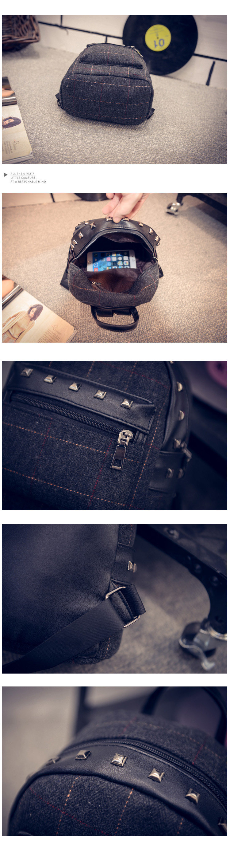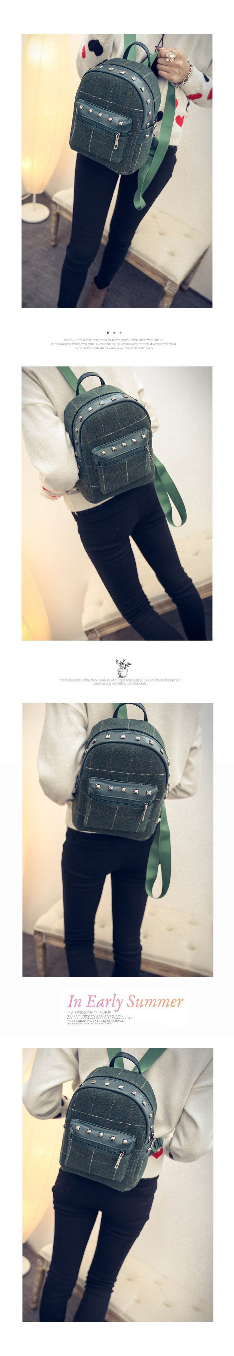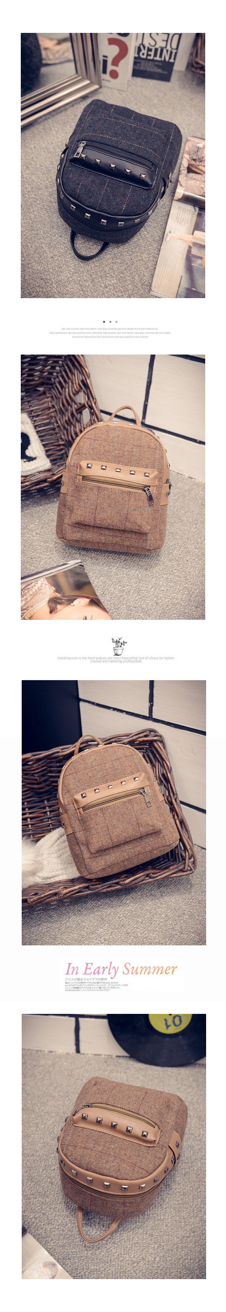 双肩包女士韩版文艺范小背包个性布艺学院风潮流格子休闲包