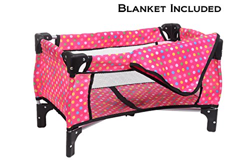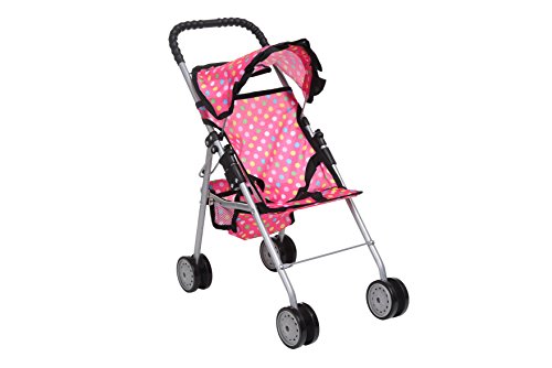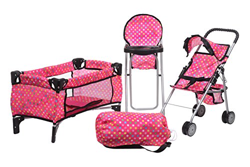 EYE-CATCHING DESIGN: This 3 IN 1 Doll Set by Exquisite Buggy features a very kid-friendly pattern of multicolored polka dots over a pink base hue, a perfect gift for your little princess.