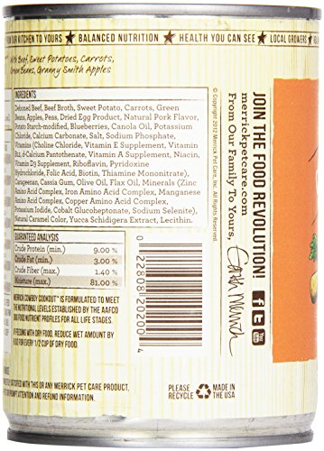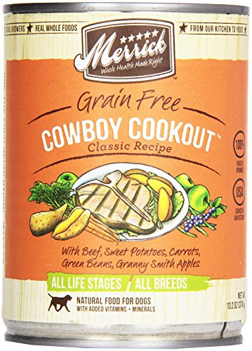 -. Feature : Made and sourced in the U.S. from USDA-inspected beef using all-natural ingredients. / Real beef stew with fresh sweet potatoes, carrots, green beans, and Granny Smith apples. / Cowboy Cookout is a grain-free diet with a low-glycemic index - ideal for diabetic, obese, or grain-sensitive pets. / Great rotational diet, ideal for dogs with sensitivities to other meat proteins.