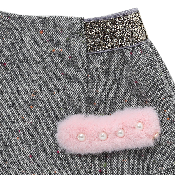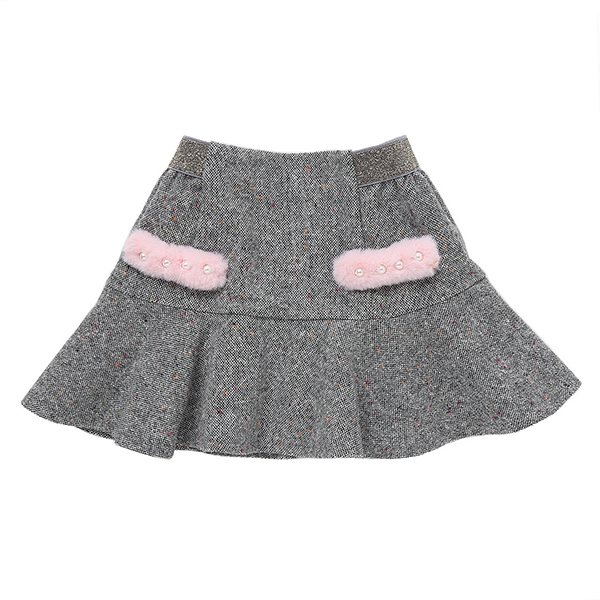 상품설명 홈스펀 퍼배색 스커트입니다. 핑크 퍼에 진주장식 디테일이 사랑스럽습니다.