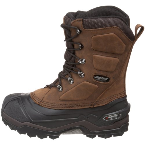 Studio : Baffin Publisher : Baffin Binding : Apparel Amazon.com Product Description This boot from Baffin is the next Evolution in cold-weather comfort. Sturdily crafted from leather, nylon and rubber, this design is keeps you warm with its removable snow collar and thick insulation. You'll also appreciate the adjustable laces and rugged rubber outsole.