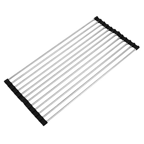 -. Brand : uxcell -. Feature : Made of stainless steel and PP plastic, matches modern kitchen design / Corrosion resistance and safty, easy cleaning and anti-folding / Roll-up designed, can be placed over the sink and convenience to storage / Suitable for air-drying for kitchen utensils and vegetable and also useful as cooling rack or prep-works platform over the sink / Size: 47cm length x 23cm width; Please measure your sink size firstly before purchasing -. Label : uxcell -. Manufacturer : uxcell -. MPN : a17071300ux0756 -. PartNumber : a17071300ux0756 -. ProductGroup : Kitchen -. ProductTypeName : KITCHEN -. Publisher : uxcell -. Studio : uxcell -. Title : uxcell 47cm Length 23cm Width Black Kitchen Sink Roll Up Caddy Dish Drying Rack