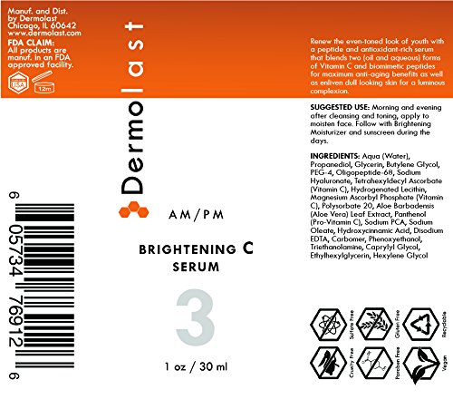 ≈ QUALITY IN ABUNDANCE ≈ Don’t settle for less! Dermolast™ prides itself on being industry leaders when it comes to improving on the old norms of Brightening C Serum formulation. We use humanely sourced Oligopeptide-68, Vitamin C (Water Soluble) and Vitamin C (Oil Soluble). Dermolast™ Brightening C Serum has the sharpest premium formulation on the market.