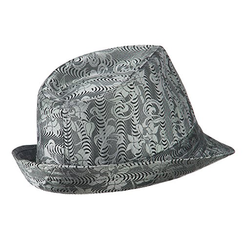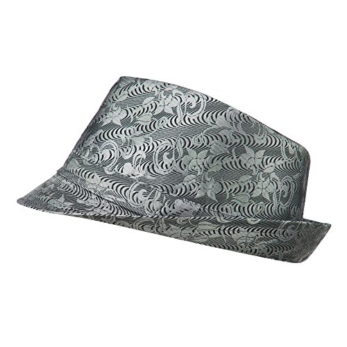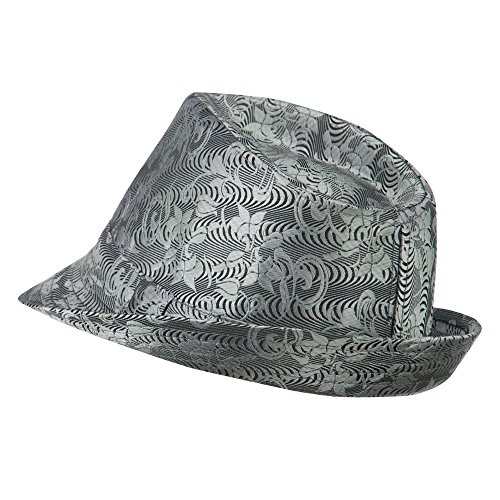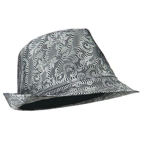 -. Title : Vine and Flower Print Microfiber Fedora - Silver
