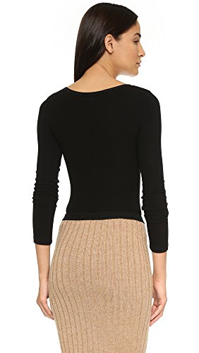 A formfitting, ribbed jersey GETTING BACK TO SQUARE ONE bodysuit with a deep scoop neckline. Button placket. Long sleeves. Snap closure at thong panty.
