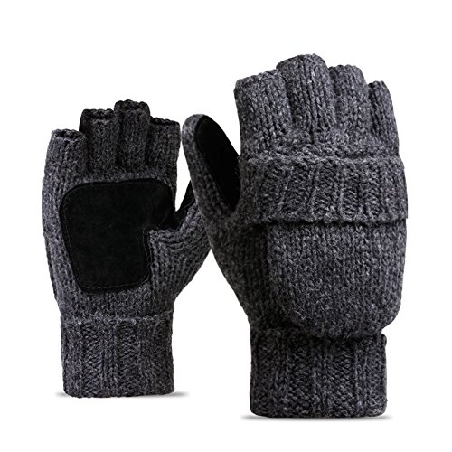Men's Winter Gloves Warm Wool Knitted Convertible Fingerless Mittens Outdoor Sport