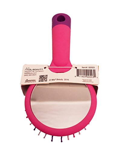Mia Happy Brush-2 in 1 Detangling Wet Brush For The Hair W/ Mirror On Back-Beautiful Bright Hot Pink Handle W/ Pretty Hot Pink, Purple, & White...