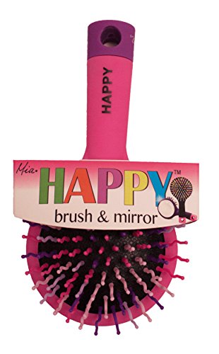 - Mia Happy Brush is a 2 in 1 detangling brush and mirror. Use the mirror to look at the back of the hair or for make-up application. These colorful brushes are engineered with curvy bristles for easier pain-free detangling. They are fun and unique and will make you happy! Other fun colors available by Mia Beauty and Mosaic Brands Inc.