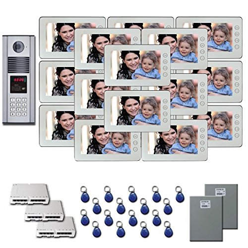 -. Feature : (1) BE-D5 Lobby Access Panel / (17) BE-V5-7W Seven Inch Color Monitors (White) / (3) BE-LA6 Six Port Coder / (17) BE-KF Key Fobs / (1) BE-PS12 Power Supply for Door Panel