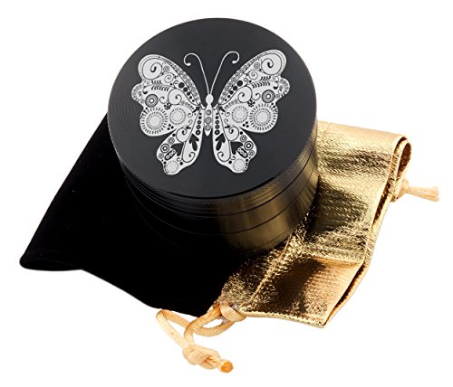 Butterfly Laser Etched Design 4pcs Large Size Herb Grinder With FREE Scraper & Velvet Pouch Item # ETCH-G012317-26