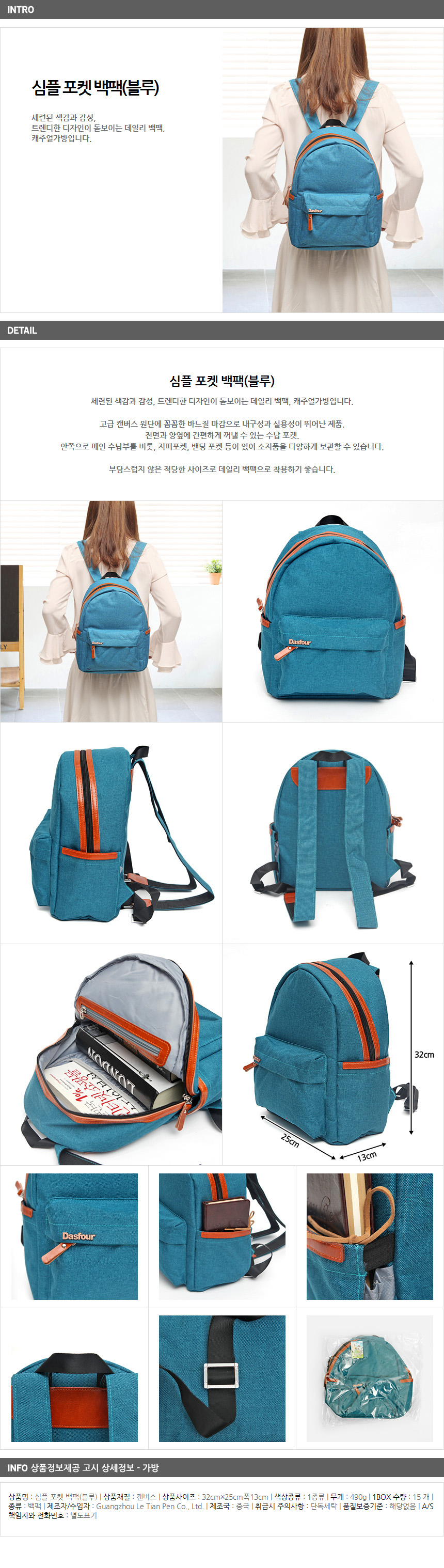 <상품명 : ZP8 심플 포켓 백팩(블루)>