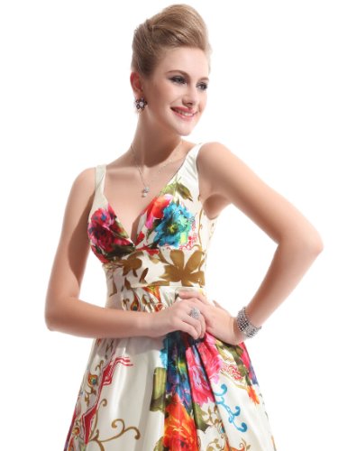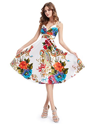 Adorable, floral printed casual day dress is perfect for those warm spring and summer months. The sexy double v-neck design and full skirt pair to create the perfect dress for any warm weather soiree.Feature
