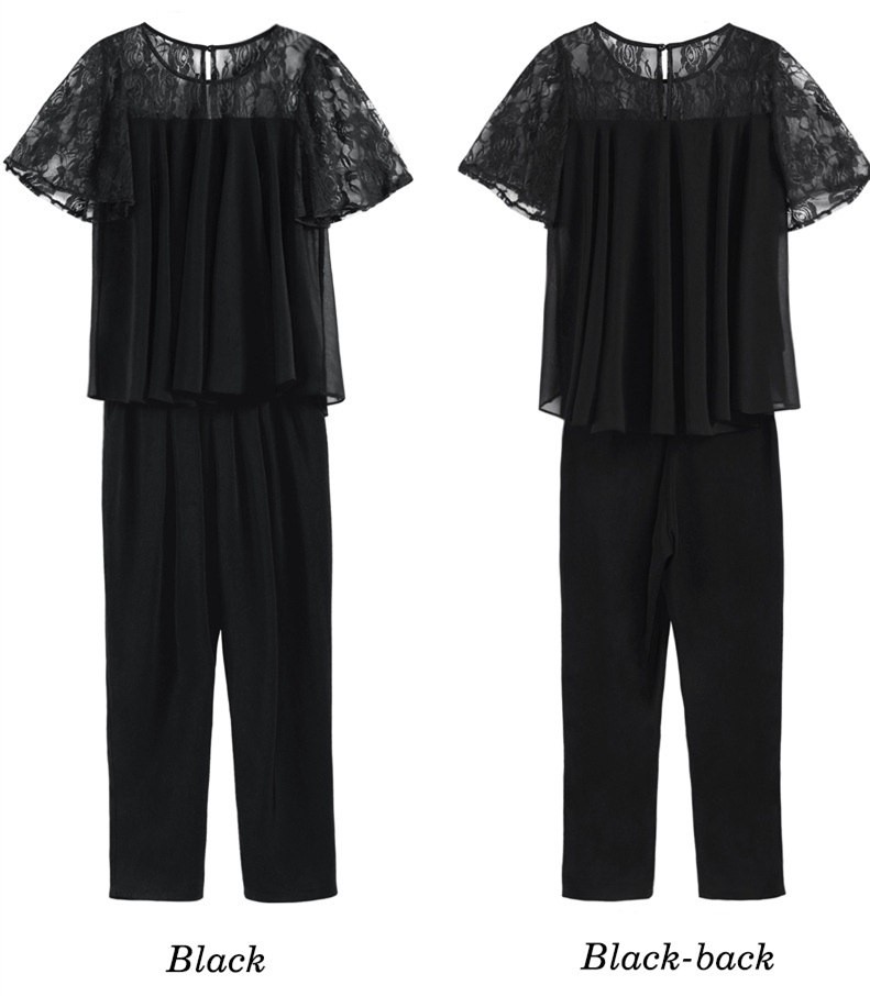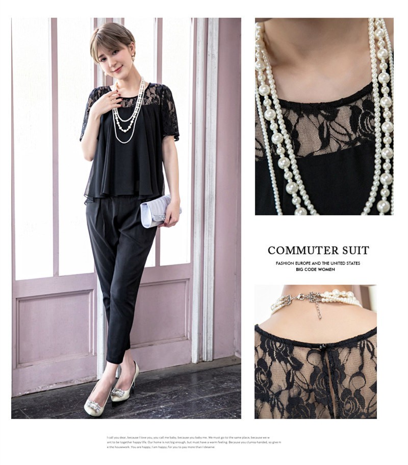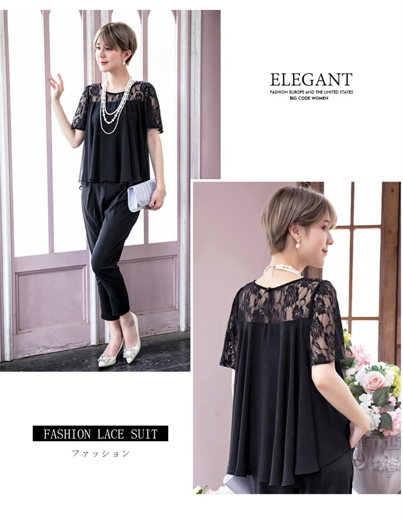 パーティードレス 結婚式 パンツドレス セットアップ パンツ 九分丈 半袖 レース シフォン パンツスーツ フォーマル 入園式 卒業式 幼稚園 小学校 セレモニー 二次会 お呼ばれ 通勤 OL 女子会 食事会 同窓会 服装 礼服 着痩せ 体型カバー フレア★素材:ポリエステル ★生地の厚さ:普通 ★生産国:中国★カラー:ベージュ/黒/紺色 (写真参考)※お客様ご使用のPC環境により商品画像のカラーが多少異なる場合があります。仕入時期により多少デザインなど異なる場合があります。ご了承ください。★サイズ(cm):S:バスト88 肩幅32 袖丈25.5 着丈59 ウエスト61 裾28.5 パンツ丈84 M:バスト92 肩幅33 袖丈26 着丈60 ウエスト65 裾30.5 パンツ丈85 L:バスト96 肩幅34 袖丈26.5 着丈61 ウエスト69 裾32.5 パンツ丈86 XL:バスト100 肩幅35 袖丈27 着丈62 ウエスト73 裾34.5 パンツ丈87※サイズは人の手によって測っているため、1-3cmの誤差がある場合がございます。予めご了承下さいませ。