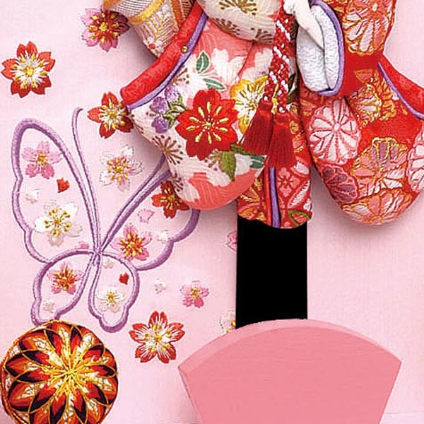 ・バック板には落ち着いた色目の羽子板セット。