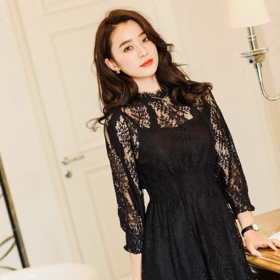 シースルーフラワーレースの、ひざ丈ワンピース。