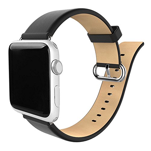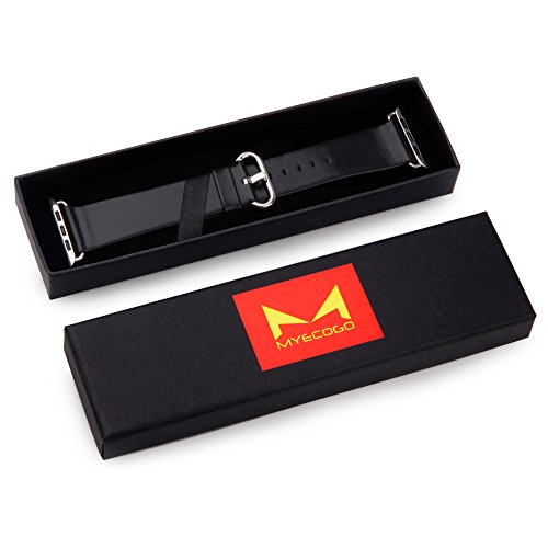 Apple Watch Band 38mm,MYECOGO Iwatch 2 Strap Genuine Leather Strap for Apple Watch & Sport & Edition Series 2-Single tour (Classic Buckle 38mm Black)