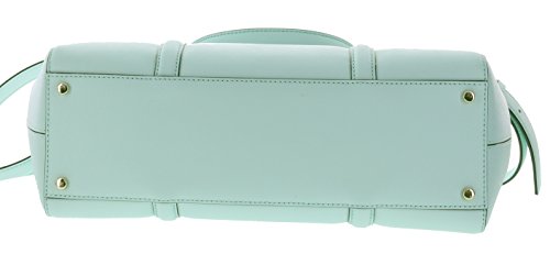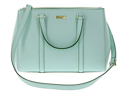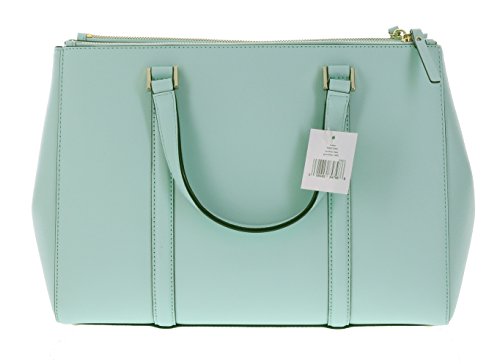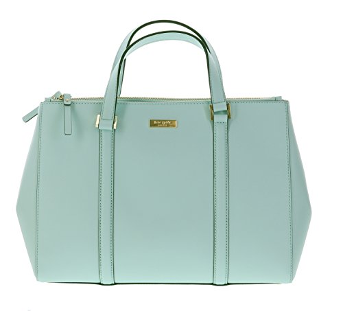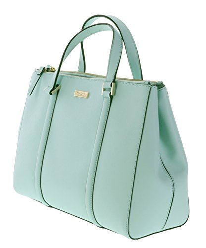 Satchel with snap closure; 14-karat light gold plated hardware; Kate Spade name plate on front