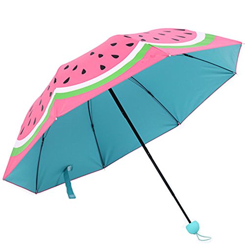 -. Feature : Unique Cute Pink Watermelon Umbrella Canopy & Bubble Dome Shape / Blue UPF 50+ UV Protection Parasol Fabric / Matching Blue Easy Carry Round Handle / Small Compact Size & Lightweight / Safe Non-pinch Umbrella Open