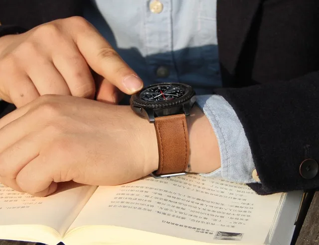 | [해외] 정품 가죽 미친 말 밴드 기어 S3 클래식 프론티어 교체 팔찌 기어 S3 클래식 프론티어 시계 |