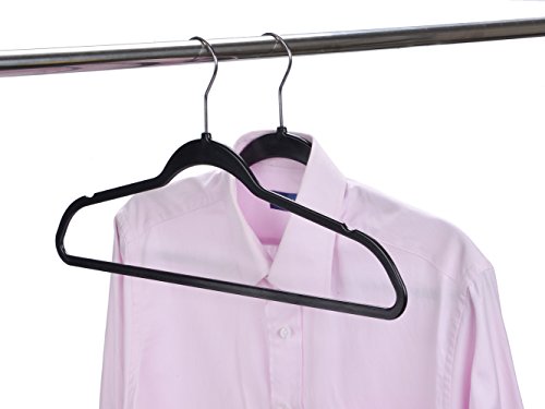 MORE PRACTICAL THEN VELVET HANGERS - It is a pain to use flocked hangars on regular clothing item as it sticks and takes extra long to hang everything up - with this one hanging is faster and frustration free - MERGES BEAUTIFULLY WITH YOUR EXISTING VELVET HANGERS.