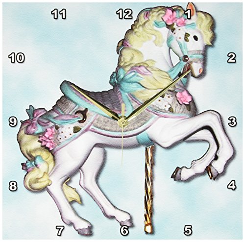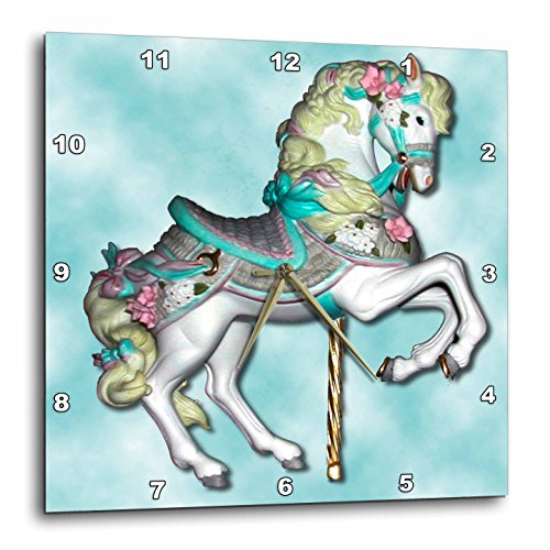 Carousel Horse in Blue Wall Clock is a wonderful compliment to any room in your home or office. Made of durable high grade aluminum. This clock has a high gloss mirror like, UV coated, scratch resistant finish and is suitable for a moist environment. Available in multiple sizes, requires one AA battery; not included. Battery box is not covered.Feature