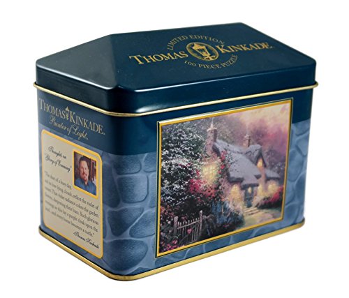 Studio : Ceaco Publisher : Ceaco Product Description Thomas Kinkade Glory of Evening 100 Piece Small Puzzle with Tin Box. 100 Piece Puzzle of Glory of Evening. Measures 9 x 7 inches completed. Puzzle comes in tin box for storing. Limited edition. Makes a thoughtful gift for just about anyone - friends, family, teachers! 0