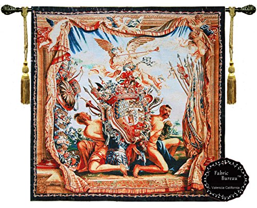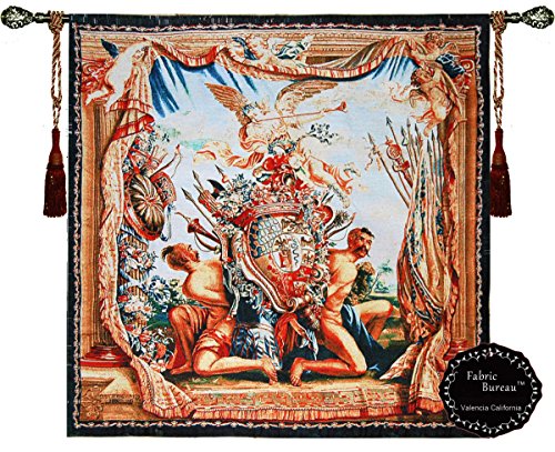 Beautiful Coat of Arms and Angel (M) Medieval Tapestry Jacquard Woven Wall Hanging Fine Tapestry Art Decor