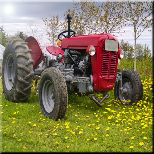 Rikki Knight RK-12intilec-9131 12" X 12" Red Farm Tractor on Yellow Field Design Ceramic Art Tile